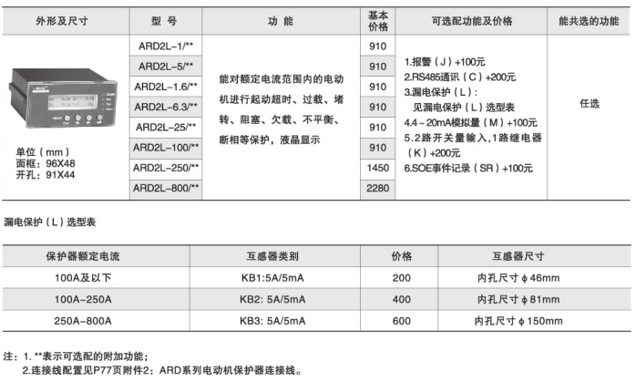 | ARD3T輔助電源 | AC/DC 110 / 220V或AC 380V,功耗≤15VA | ||