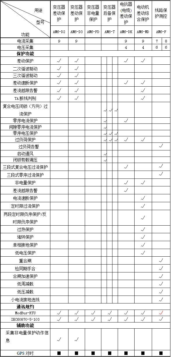 | AM6-MD 電動機(jī)差動綜合保護(hù)裝置 | 2000kW及以上異步電動機(jī) |