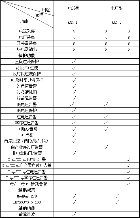 | AM4-I 電流型微機(jī)保護(hù)裝置 | 進(jìn)/饋線、廠用變、電動機(jī)等 |