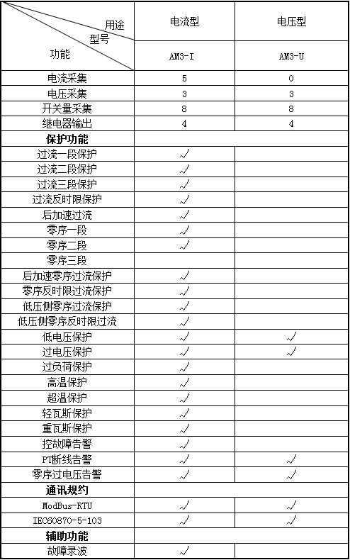 | AM3-I 電流型微機(jī)保護(hù)裝置 | 進(jìn)/饋線、廠用變、電動機(jī)等 |