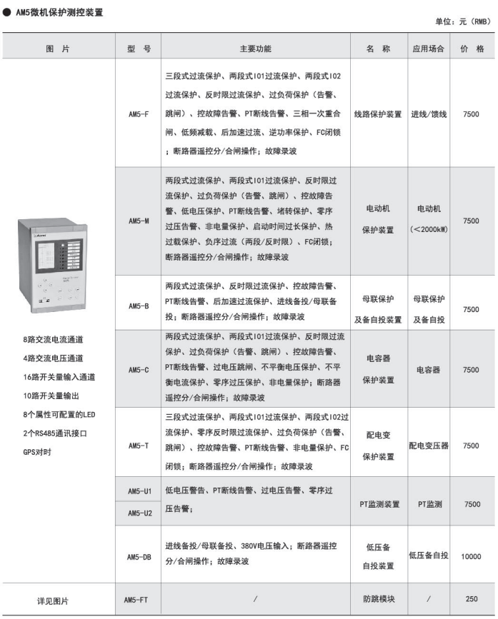 | AM5-U PT監(jiān)測裝置 | PT監(jiān)測 |