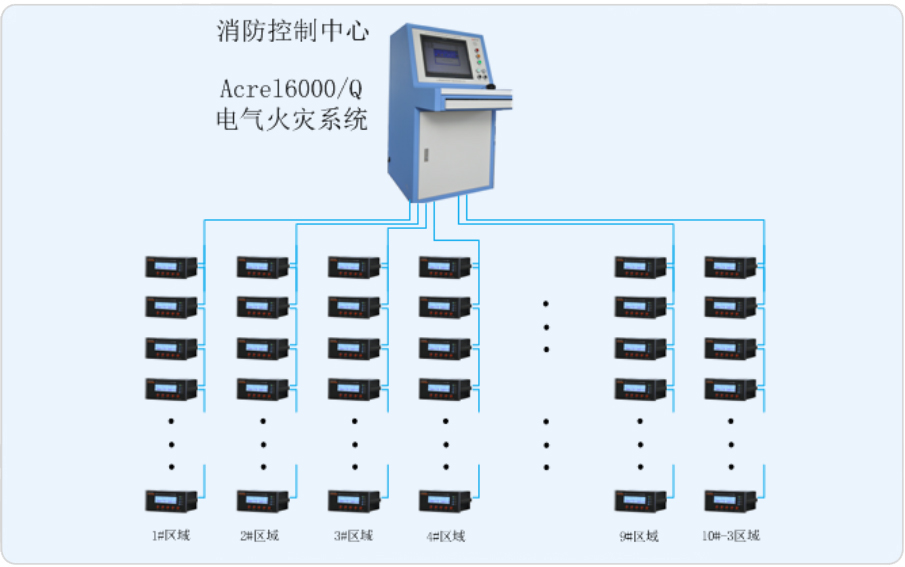 1.監(jiān)控報(bào)警 監(jiān)控設(shè)備能接收多臺(tái)探測器的漏電、溫度信息,報(bào)警時(shí)發(fā)出聲光報(bào)警信號(hào)